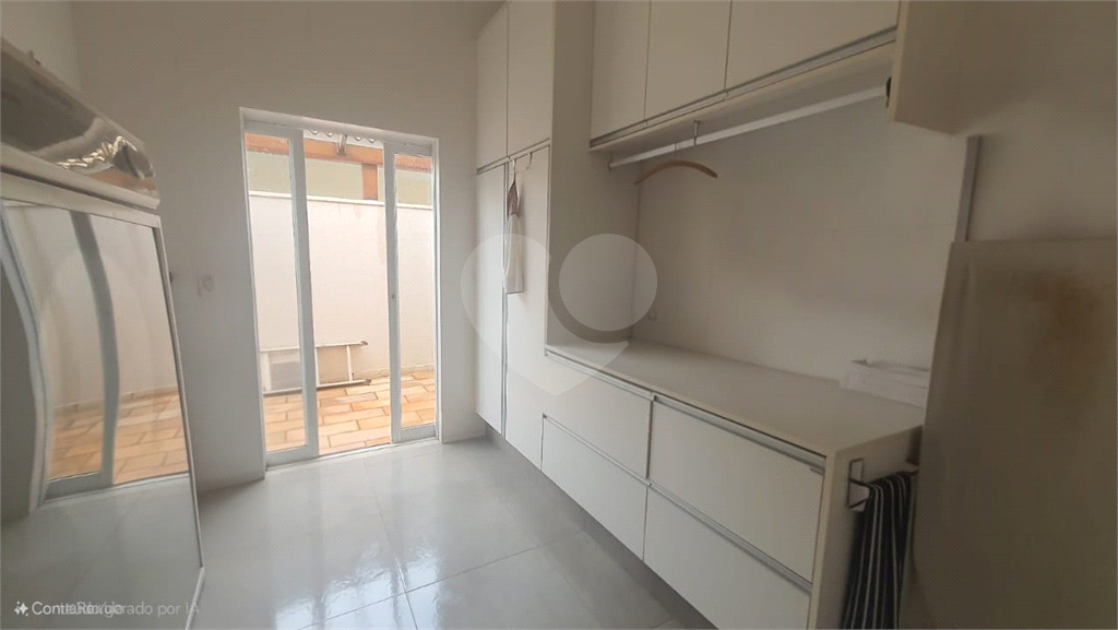 Área de serviço ampla com armários planejados, espaço para máquinas e duto de roupas do andar superior