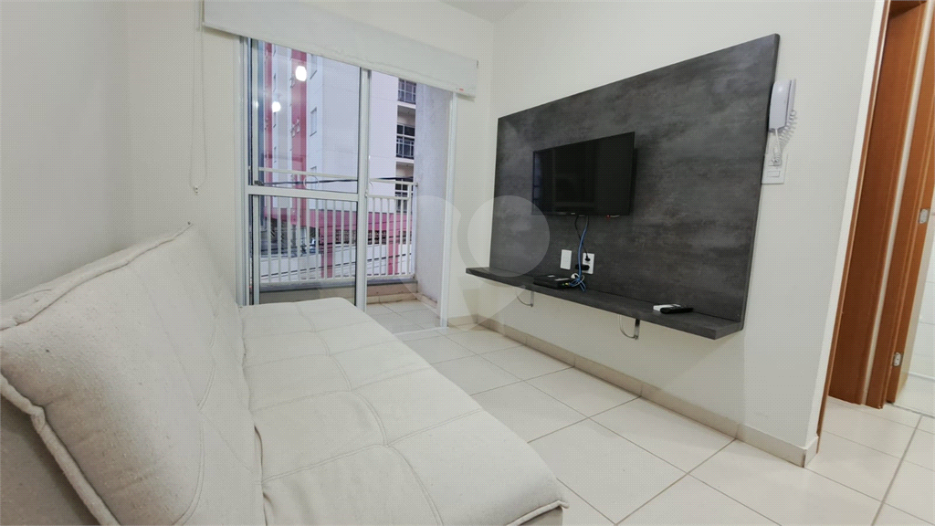 > Sala para dois ambientes, já equipada com painel, TV e sofá