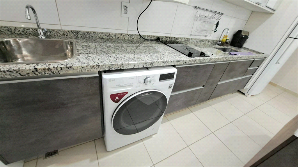 > Área de serviço com armários e máquina lava e seca 11 kg
