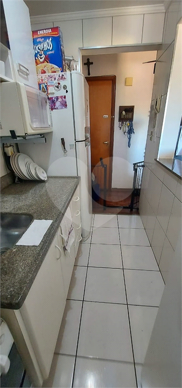 Cozinha com armários embutidos e gabinete.