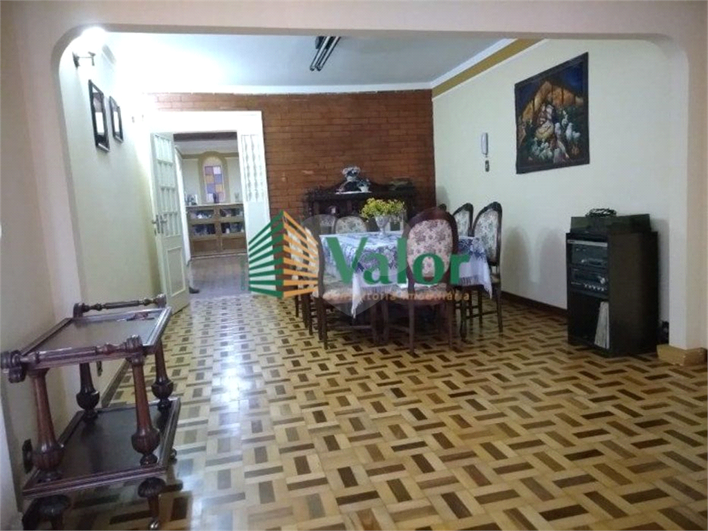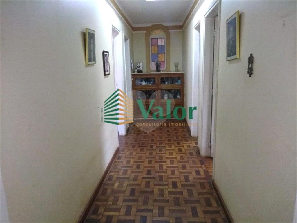 CASA TÉRREA A.T. 232 m² A.C. 195 m² contendo: 3 dormitórios sendo 1 suíte com armários e box, piso taco Cozinha com azulejo até o teto, gabinete e armários, coifa, piso cerâmico Banheiro social com box e pia com gabinete Sala de jantar com lareira piso em tacos bem conservado Sala de TV com sofá e estante em alvenaria Garagem coberta com 2 vagas Corredor lateral, quintal e terraço