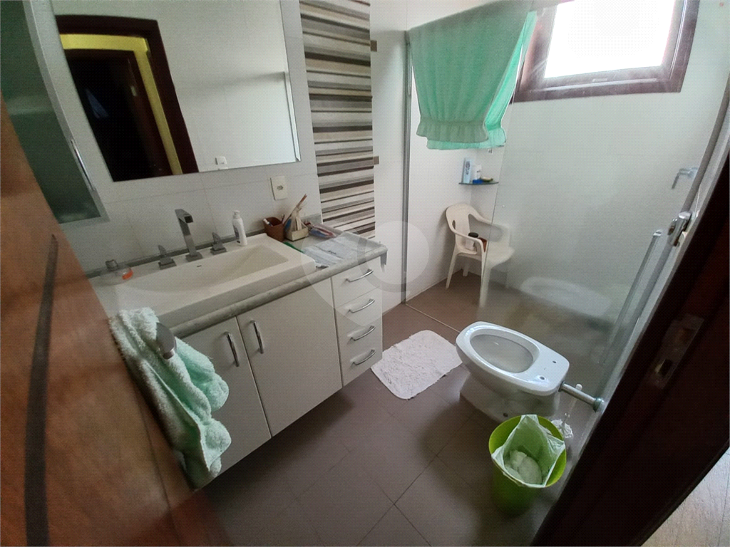 2 Banheiros sociais com gabinete e box de vidro.