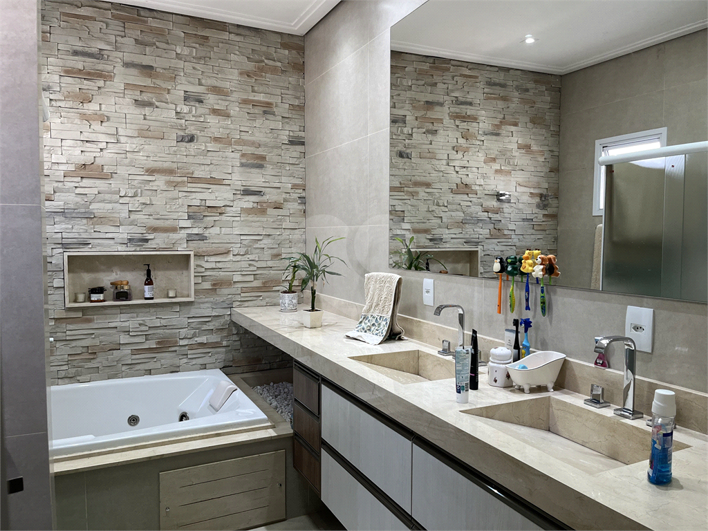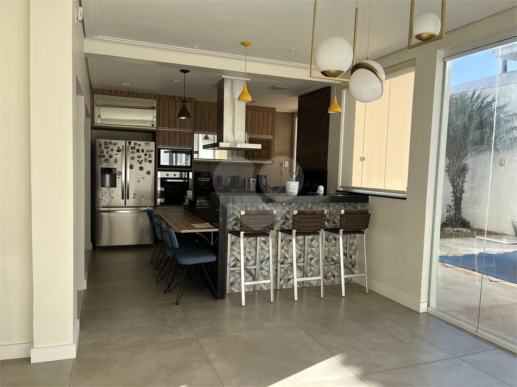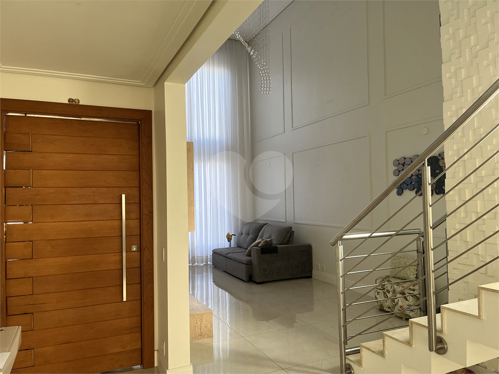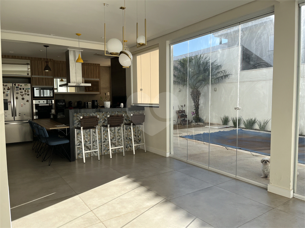 Casa para venda no condomínio Quebec. Sobrado espaçoso e com excelente padrão de acabamento. Imóvel conta com 247 m² de área útil e 330 m² de área total de terreno Piso térreo contém; Sala dois ambientes com pé direito duplo 02 lavabos 01 escritório Área gourmet com churrasqueira integrada à cozinha com armários planejados, coifa e coocktop, torre quente. Lavanderia com armários Piscina climatizada 2 vagas de garagem cobertas, 2 vagas descobertas